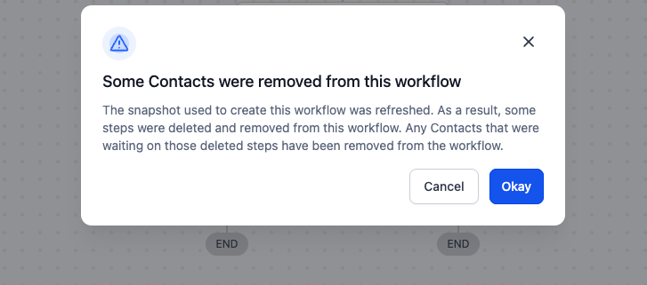 Snapshot Refresh Improvements When you refresh a snapshot, it can remove steps from related workflows. Previously, contacts waiting on those deleted steps could become stuck, necessitating manual cleanup. Now, we automatically remove these contacts and provide a brief notification only when a workflow is affected, ensuring that nothing stalls and you are fully informed about […]