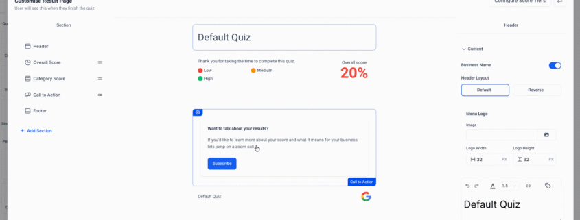 /in What's New?We’ve enhanced the CTA Section of the Quiz Results Page to facilitate quicker and smarter configuration, particularly for quizzes with multiple tiers (Low/Medium/High). These updates are designed to streamline the setup process and improve the end-user experience. 1) Default Values by Tier: When setting up a CTA for the first tier (e.g., Low) of a […]