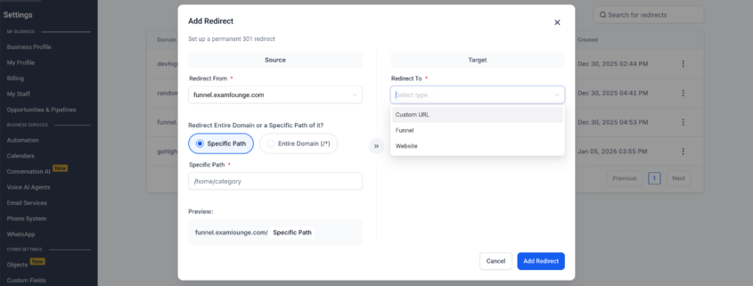 /in What's New?We’ve launched a revamped URL Redirect interface with an improved, intuitive user experience, making it easier to set up and manage 301 redirects. This update also introduces support for full domain-level redirects to external domains not connected to your account. 1. Refreshed UI: Users can now select a source domain and choose to redirect either […]