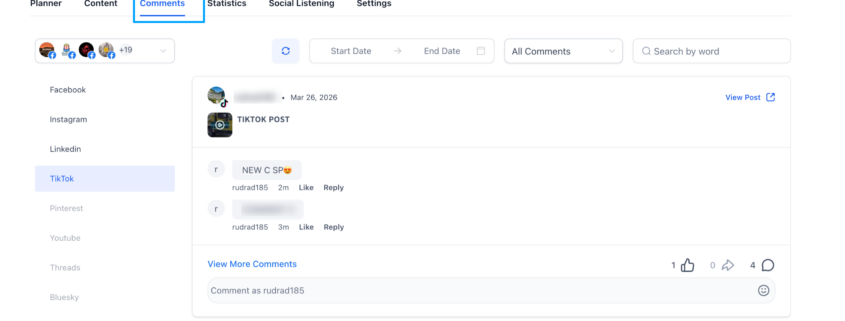 Comment Management Now Supports Tiktok in Social Planner💬