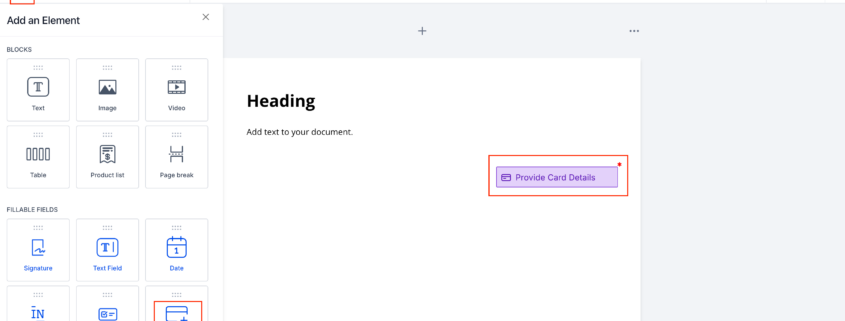 What’s New? You can now collect and save card details within Documents & Contracts using the new “Card Details” field. Signers can securely add their card details while completing the document, and the card will be saved for future payments. How to Use? Open the document builder and click on “+ Add Element”. Drag and […]